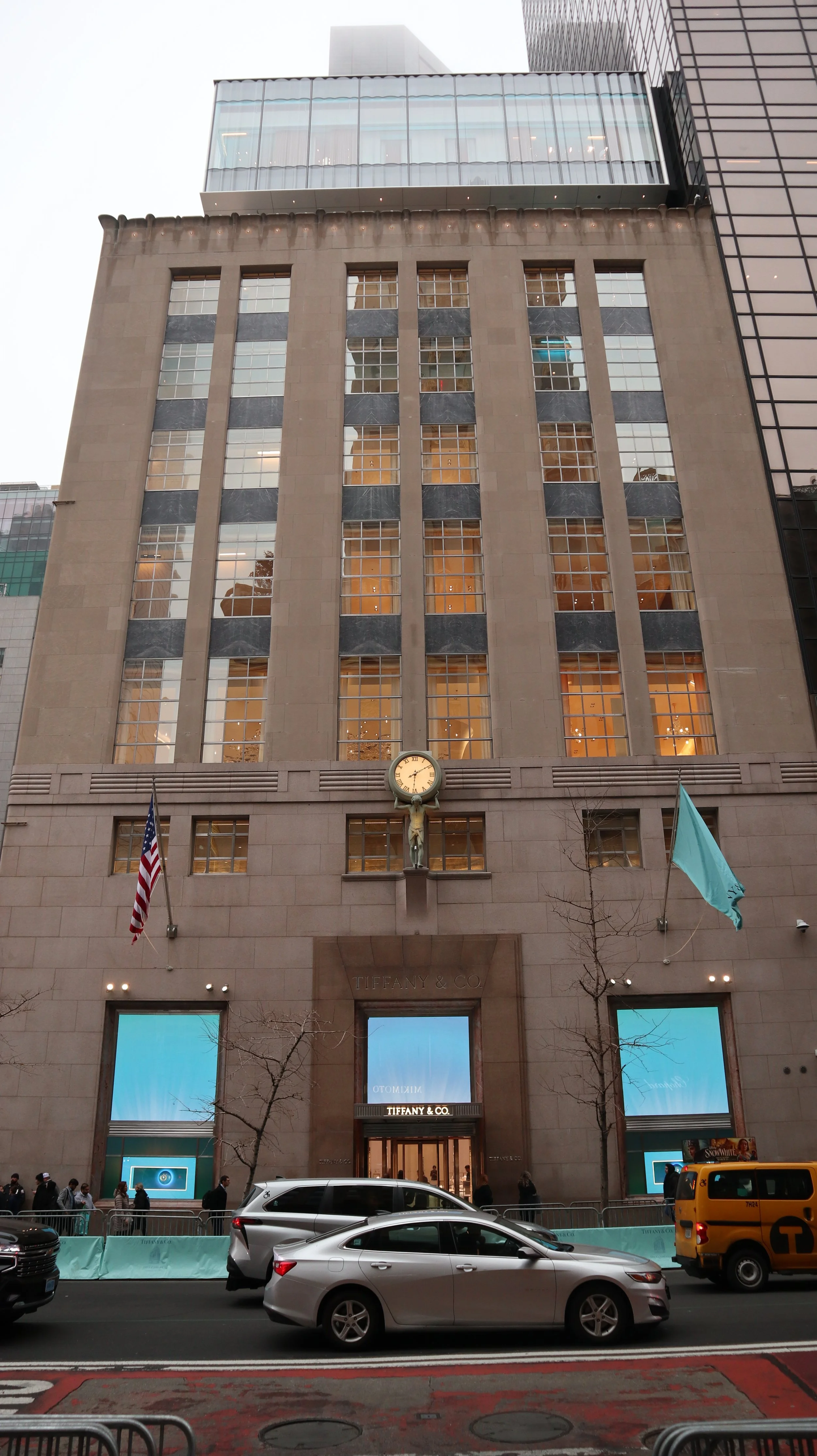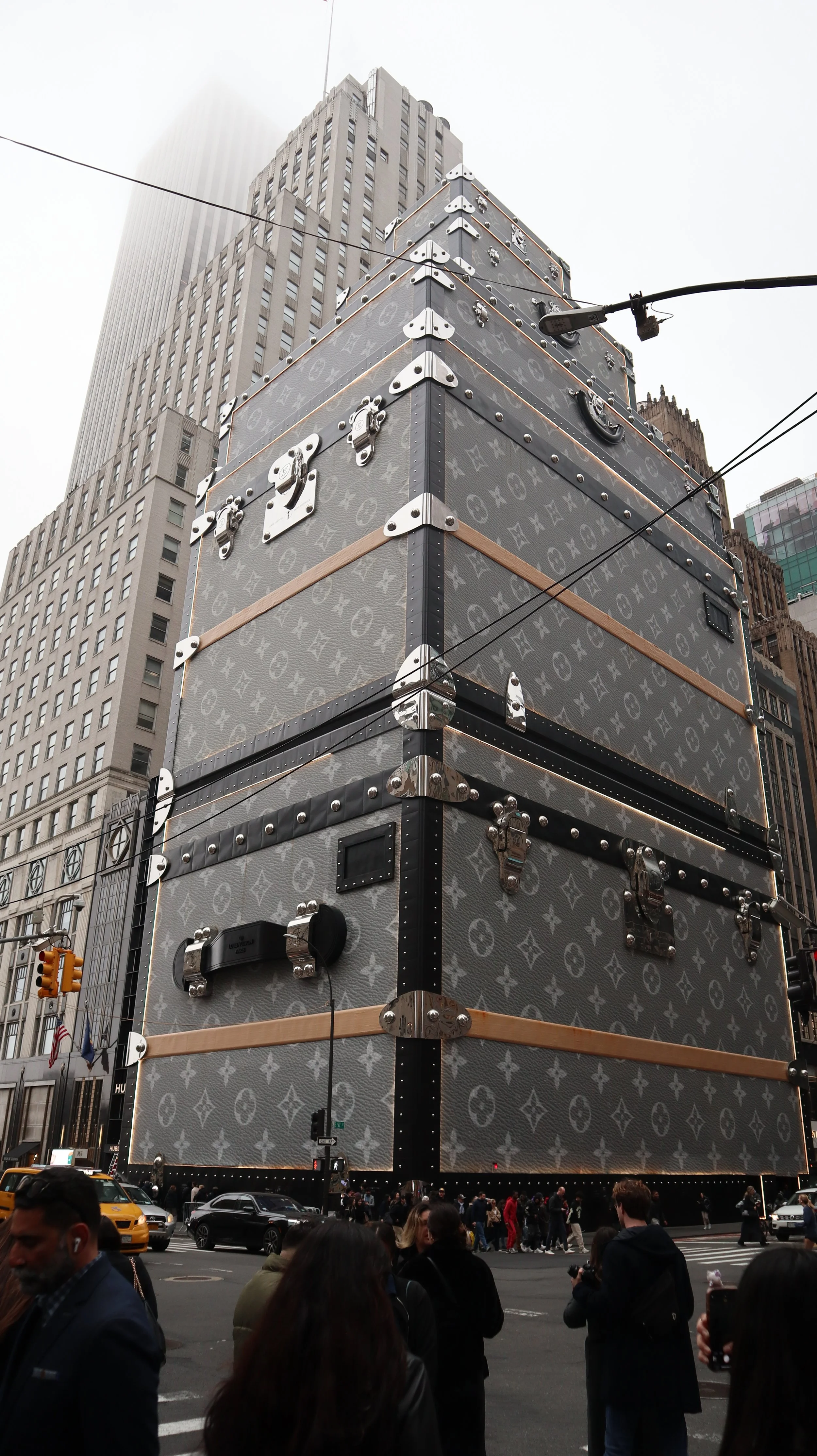Continuing my journey onto Fifth Avenue was everything I imagined. It was loud, bright, and alive with motion. I saw extravagant designer outfits. Tourists shouted over each other as they hailed cabs. Every person seemed to carry a different colored shopping bag from a different luxury brand. Navigating the sidewalk felt like dodging through an obstacle course. Just before reaching the flagship Tiffany store, I stopped in a crowd gathered on a street corner. Everyone was pointing their phones to the sky. I turned and saw a massive Louis Vuitton suitcase, towering above the sidewalk like some surreal monument dedicated to consumerism. This street in New York almost felt like an area where fantasy and reality blur under the glow of these designer storefronts.