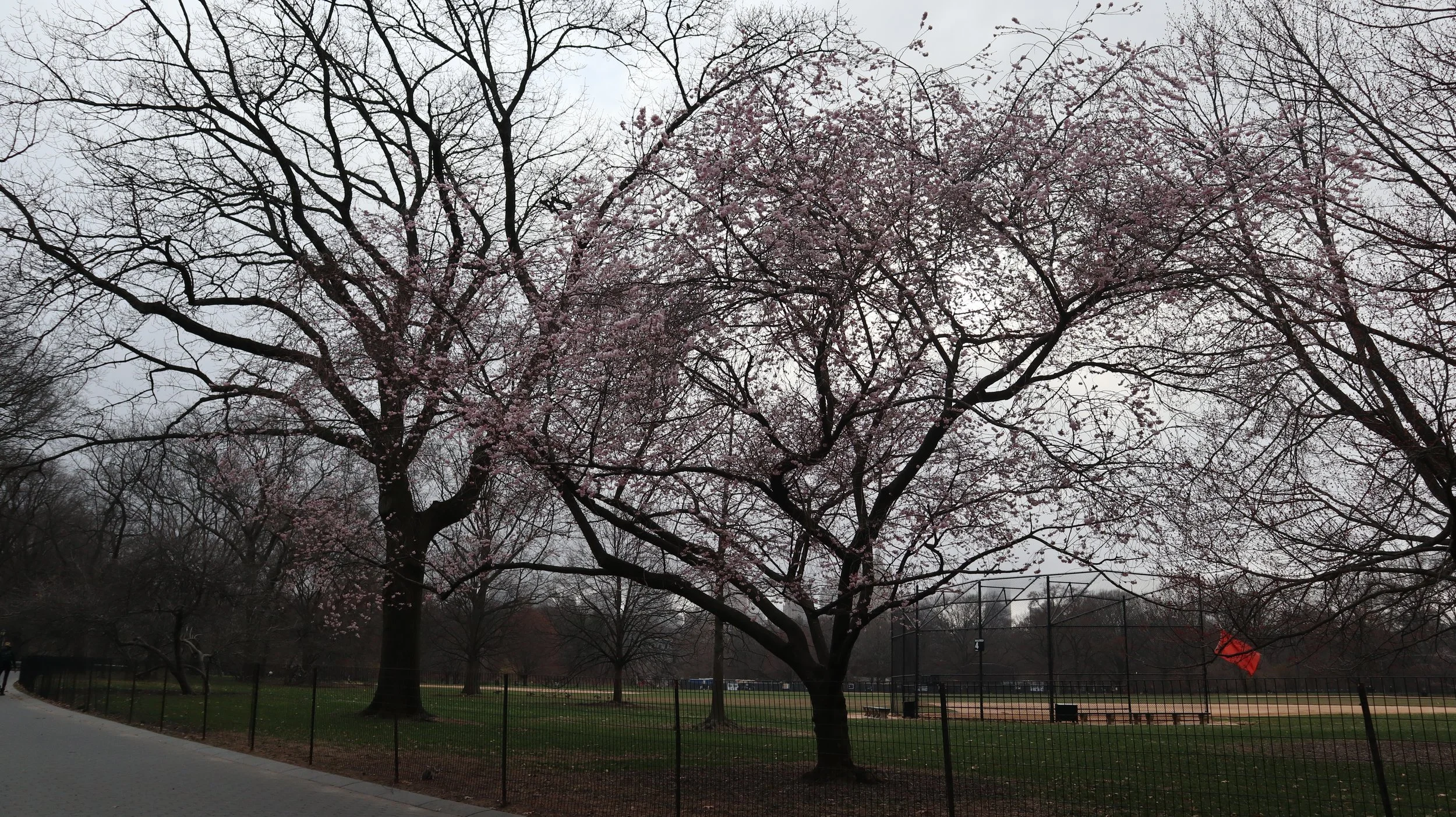 When I finally reached the park, I was almost relieved to find it empty. It was a cold, gloomy afternoon, keeping most people away from lingering in the park. I picked a bench facing a tree that was just beginning to bloom. Amidst the grey skies, its branches had pink blossoms, a sign of spring breaking through. For the first time all day, I was not navigating crowds or looking over my shoulder. It was quiet. Completely still.